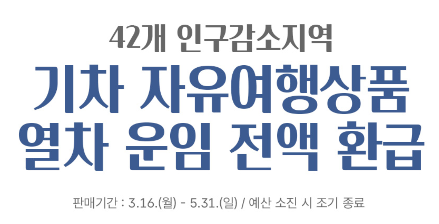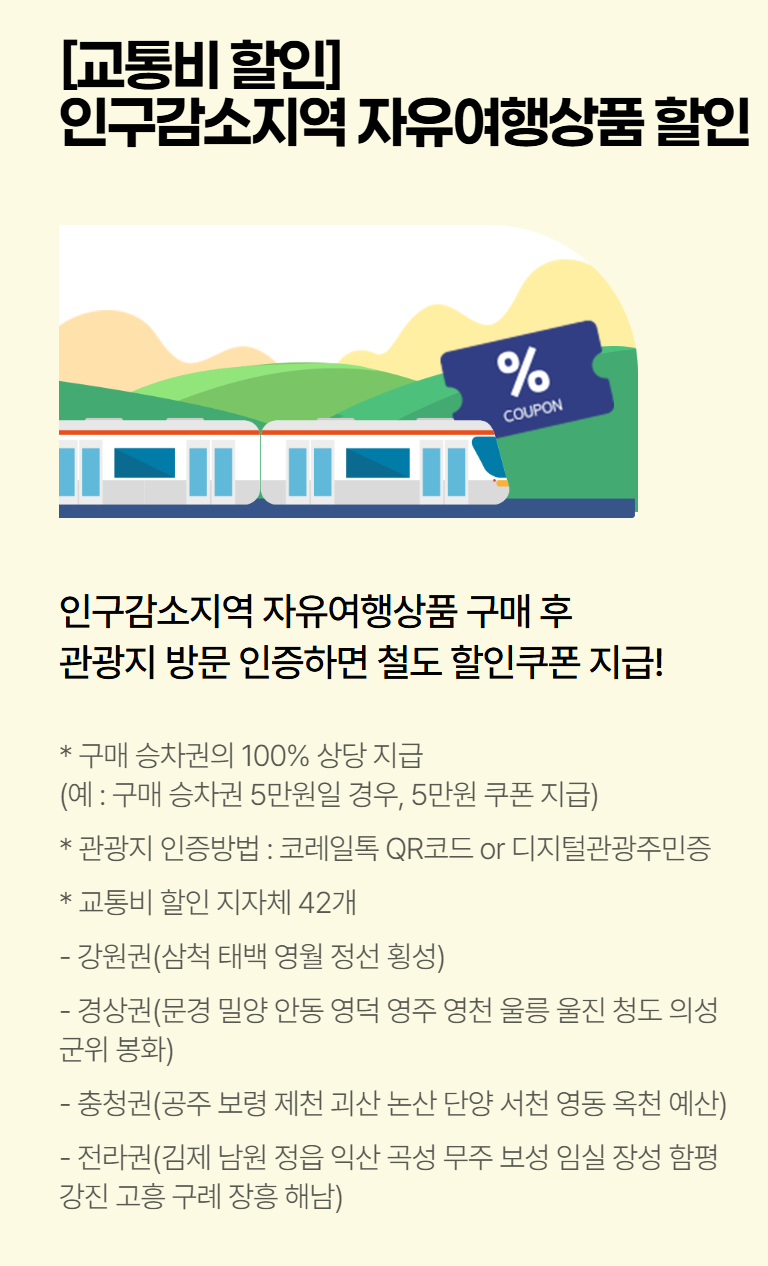 KTX 비용 100% 환급되는 지역여행 - 인구감소지역 자유여행상품 할인