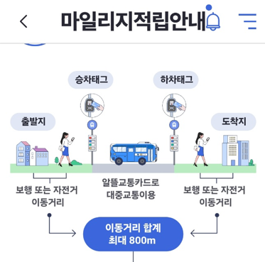 알뜰교통카드는 마일리지 적립을 위해서는 승하차 태그 이외에도 보행거리 800m를 만족해야 했습니다.
